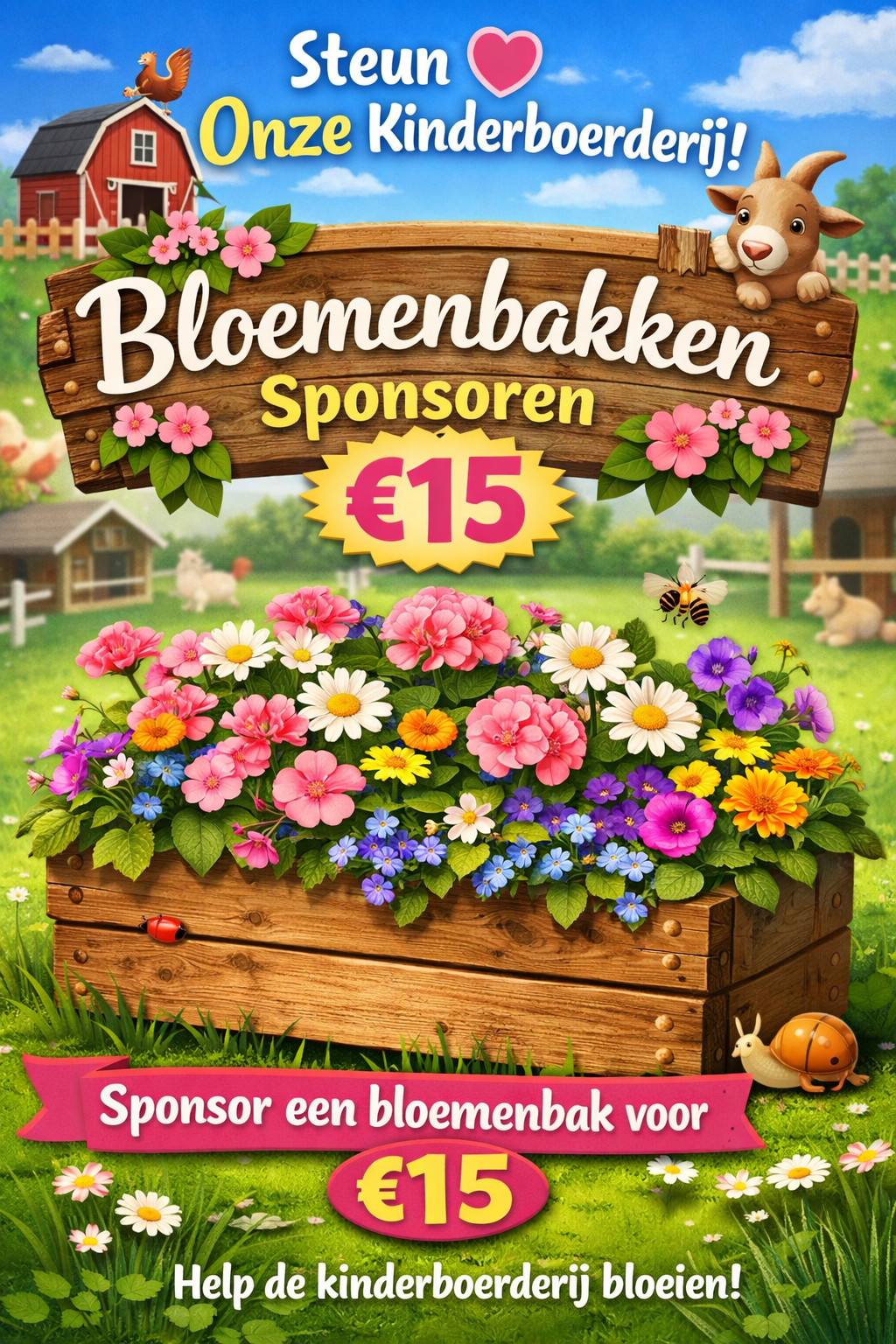 Sponsor een bloemenbak bij de ingang of langs het pad. Jouw naam op een klein bordje erbij — bloemenpracht voor iedereen!